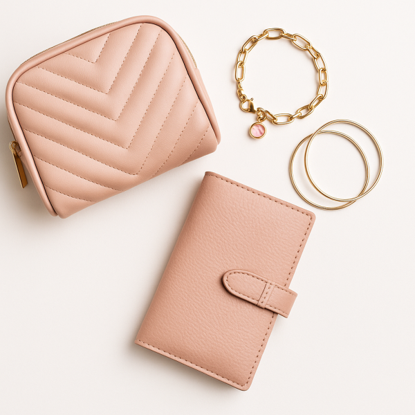 Neceser pequeño color rosado con flores, ideal para guardar cosméticos o accesorios. Práctico y con estilo.