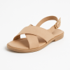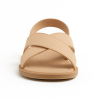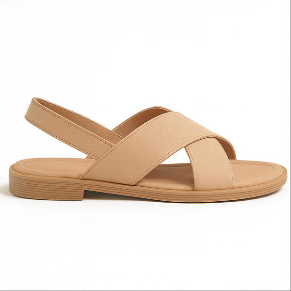 Sandalia beige con tiras cruzadas y suela cómoda.